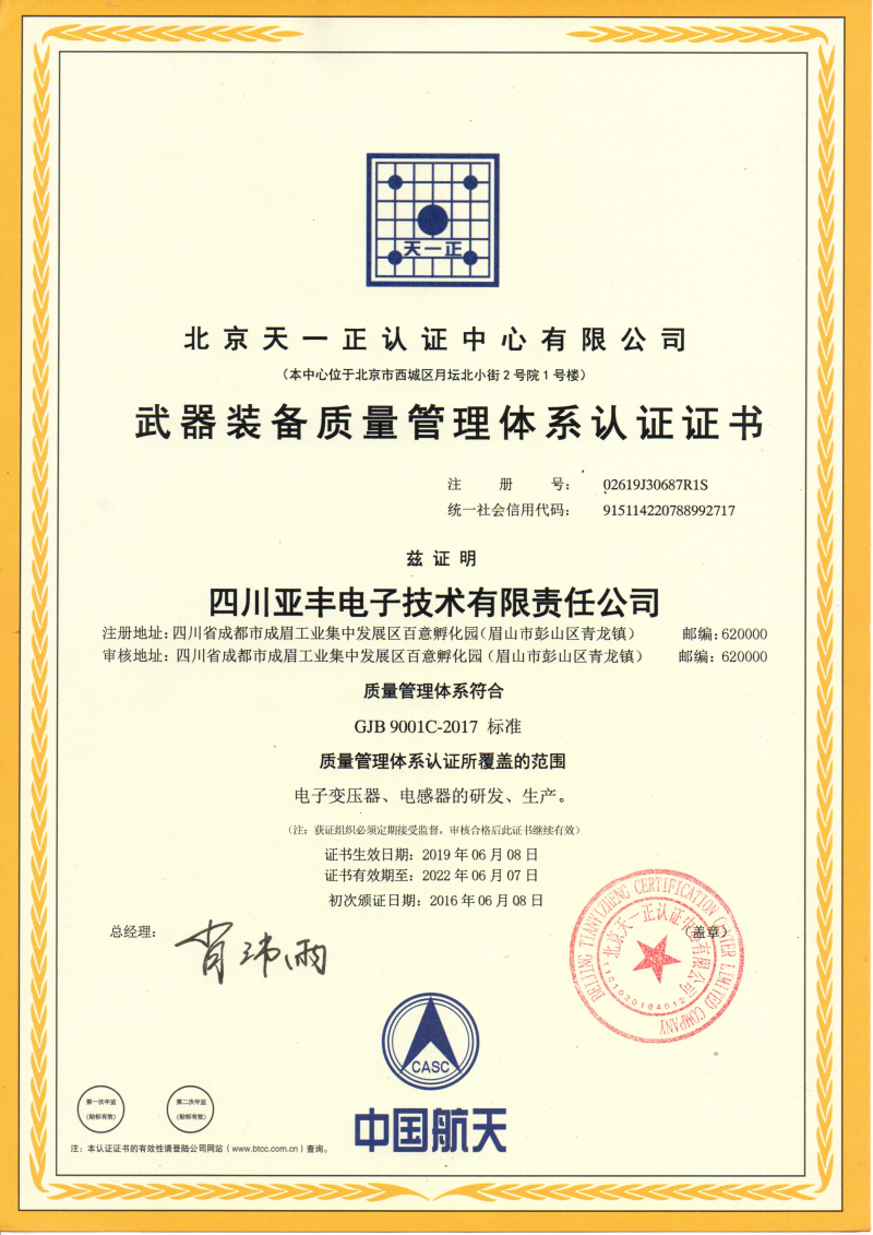 6月5日至6日,亞豐電子順利通過國軍標質量管理體系2019年度監(jiān)督暨換版現(xiàn)場審核。